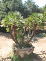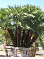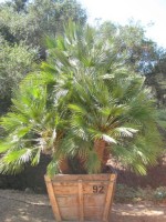 Fan Palm makes a nice accent plant in a shrub border or in a low-growing groundcover. A slightly salt-tolerant palm whose leaf stalks are spiny, Fan Palm may be used as a barrier planted several feet apart or in mass on a large-scale landscape forming a fine-textured accent area.. Growing best in moist rich soil, it is drought and wind resistant, and established plants will survive temperatures to 10 degrees F. or below, in full sun or light shade. Plants grow very slowly in the shade.