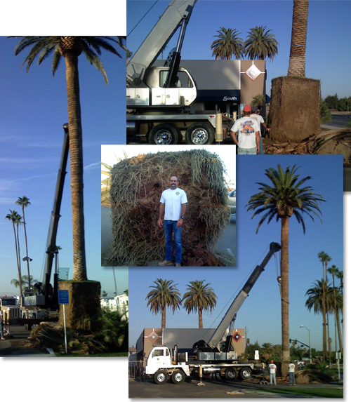 Canary Palms are carefully hand dug and removed from common areas for relocation.